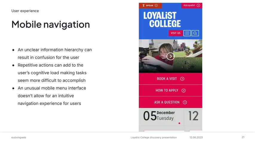 Loyalist College avait plusieurs préoccupations : un énorme arriéré de dettes technologiques nécessitant une révision, des plaintes concernant le site actuel de la part des étudiants, des futurs étudiants et du personnel, ainsi qu’un changement de marque devant être reflété sur un nouveau site web.
